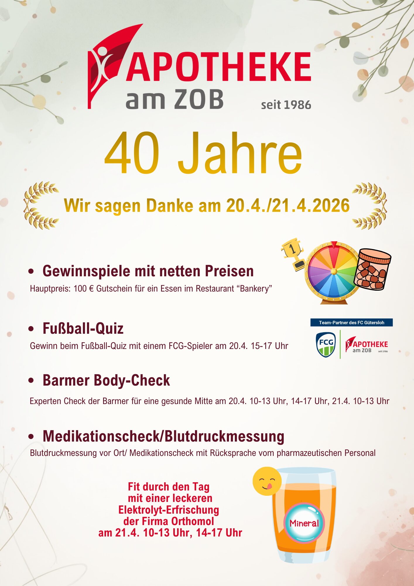 *Wir spenden 1 % unseres Umsatzes aus dem frei verkäuflichen, nicht rezeptpflichtigen Sortiment an soziale Einrichtungen im Kreis Gütersloh.